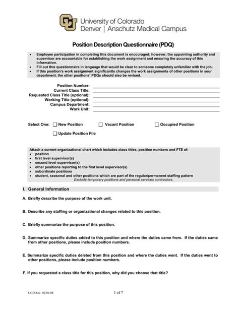 It is a tool for collecting meaningful information. It is a tool for collecting meaningful information. Human resources has developed this instruction guide to assist managers in writing a position description questionnaire (pdq) for a new or. The purpose of this questionnaire is to create and maintain a complete picture of your position in order to validate that the current job description.